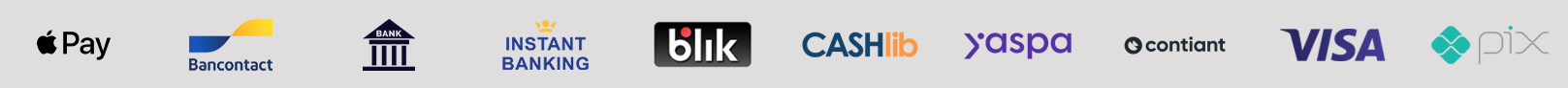 Betalingsmetoder | Visa, Mastercard, Revolut, Google Pay, Apple Pay, Skrill, Neteller, MiFinity, Jeton, Paysafecard, Cashlib, Binance Pay, Bitcoin, Ethereum, Litecoin, Dogecoin, Ripple, Tether, Monero, Sofort, Giropay, Przelewy24, Interac, MuchBetter, Ecopayz |
