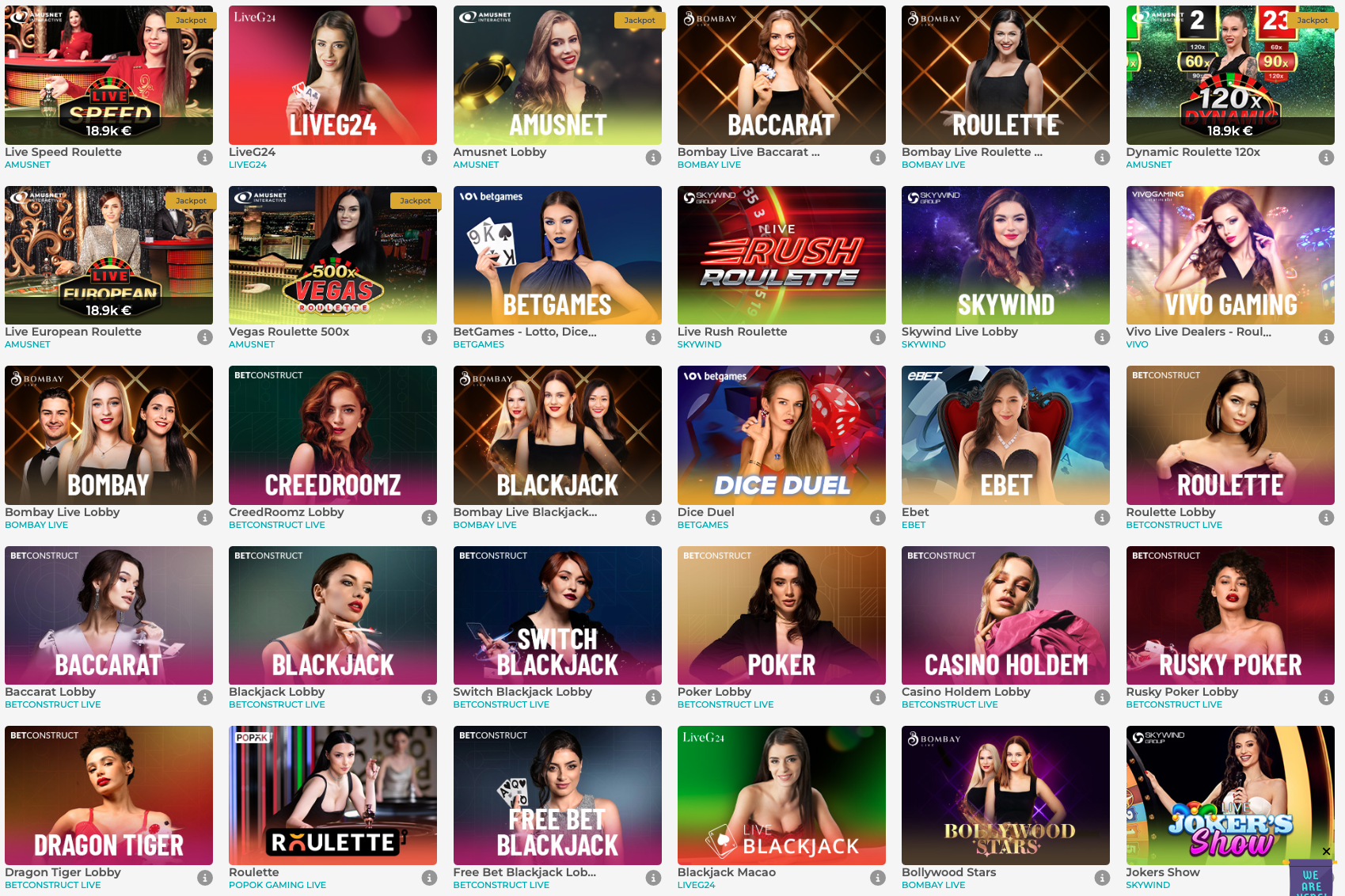 - Live casino – Spennende direktespill med ekte dealere, levert av Evolution, Pragmatic Play og Playtech.