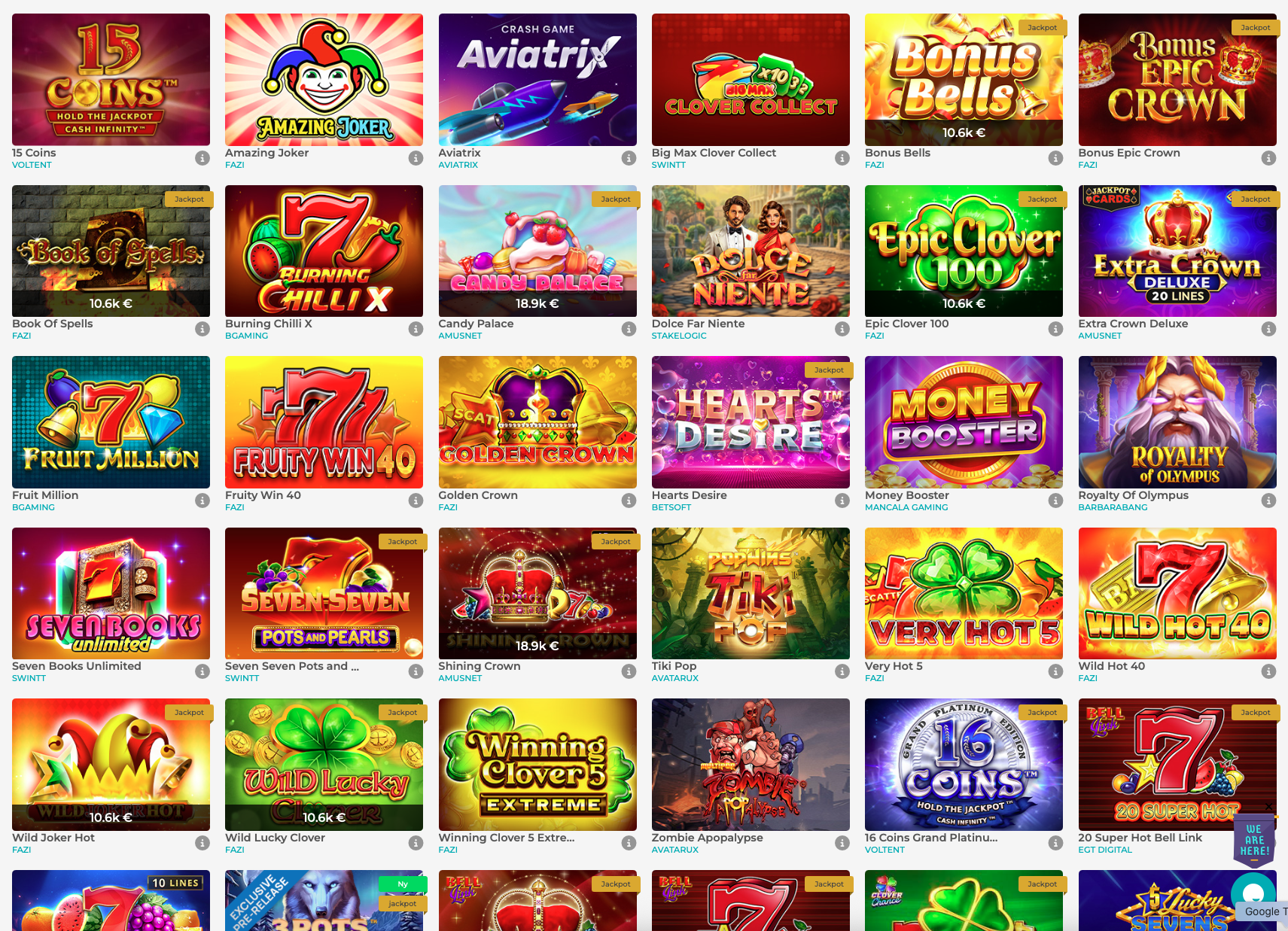 Spillbiblioteket består av over 13 000 titler. Her finner du spilleautomater, jackpotspill, bordspill, live casino, sportsbook og mye mer.